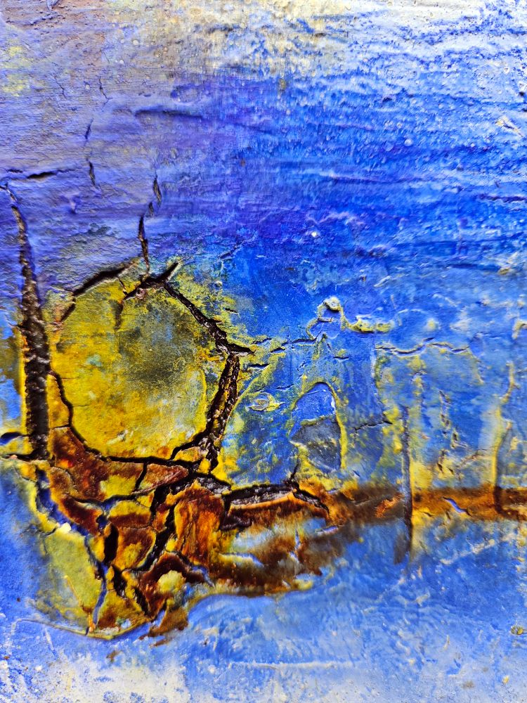 Das Kunstwerk ist in mehreren Schichten gearbeitet. Kleine Ausschnitte - echter Natur- laden Dich ein einzutauchen in eine Farb- und Fantasiewelt.