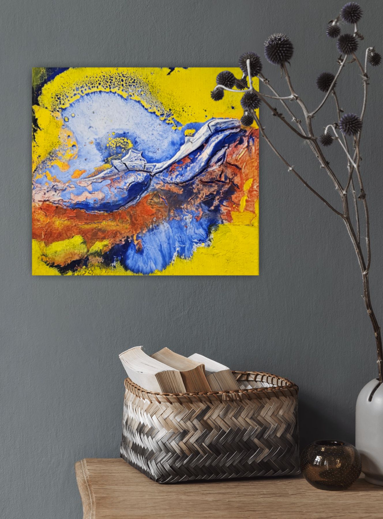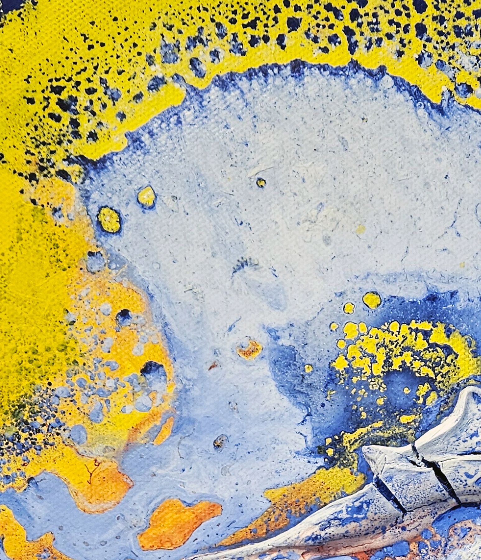 Das Kunstwerk ist in mehreren Schichten gearbeitet. Natur als Inspiration, darf jeder die eigene Fantasie spielen lassen. Kleine Ausschnitte - echter Natur- laden Dich ein einzutauchen in eine Farb- und Fantasiewelt.